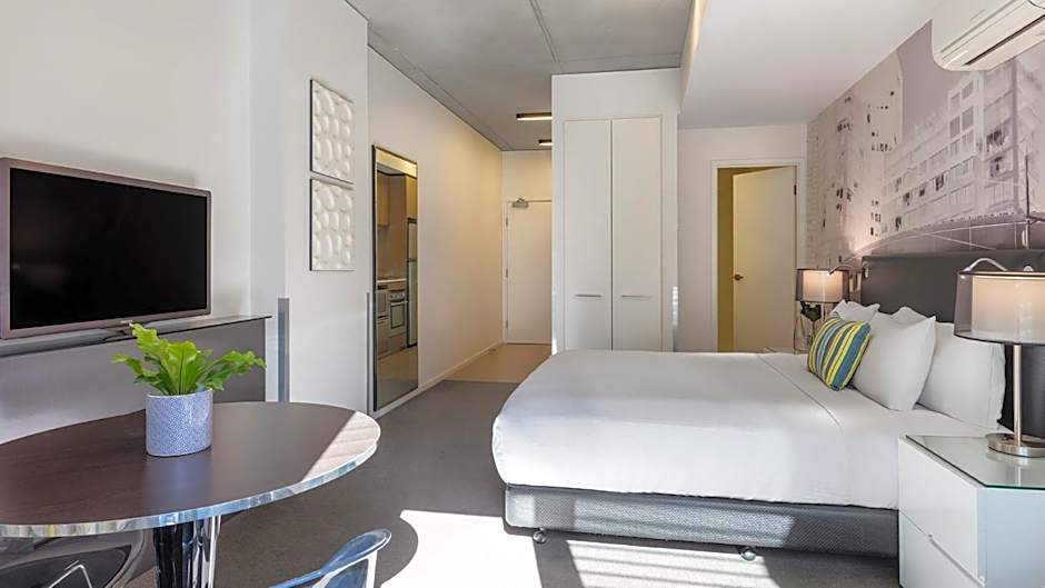This studio features a balcony with expansive views overlooking Melbourne city, air-conditioning and an equipped kitchenette with tea/coffee making facilities. Also provided is a flat-screen TV, free WiFi. Please note this studio will not be serviced for the duration of your stay.